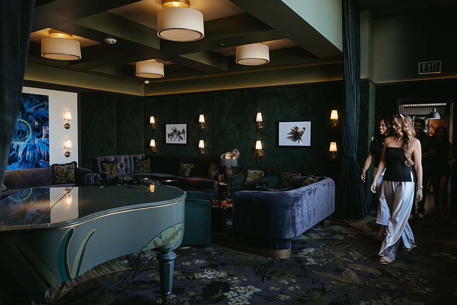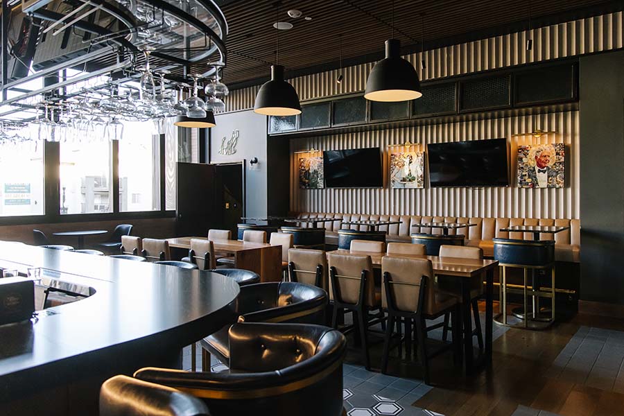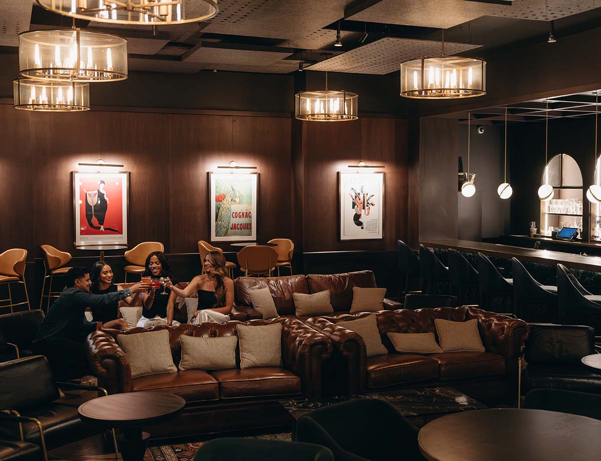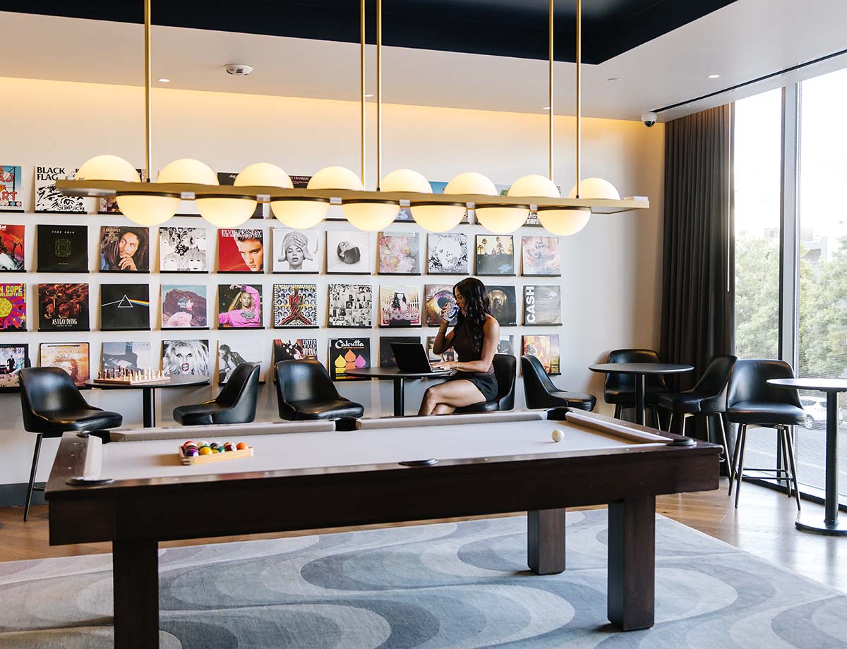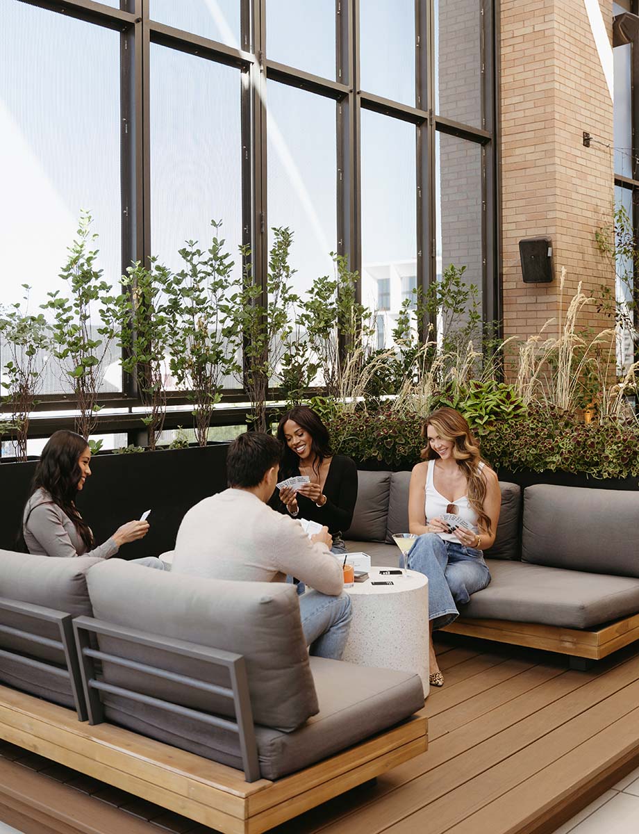 Brix apartments clubhouse with plush seating, large windows, and elegant decor.