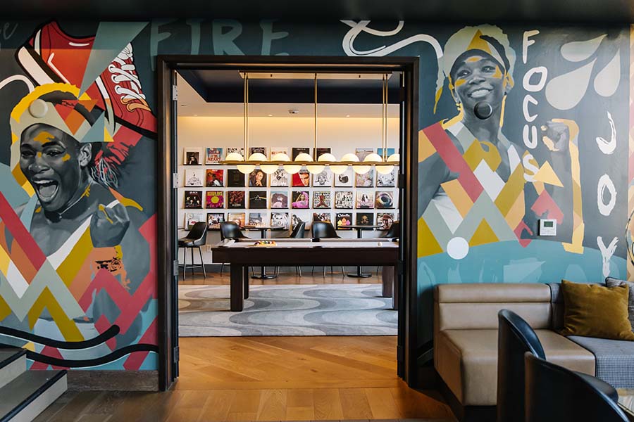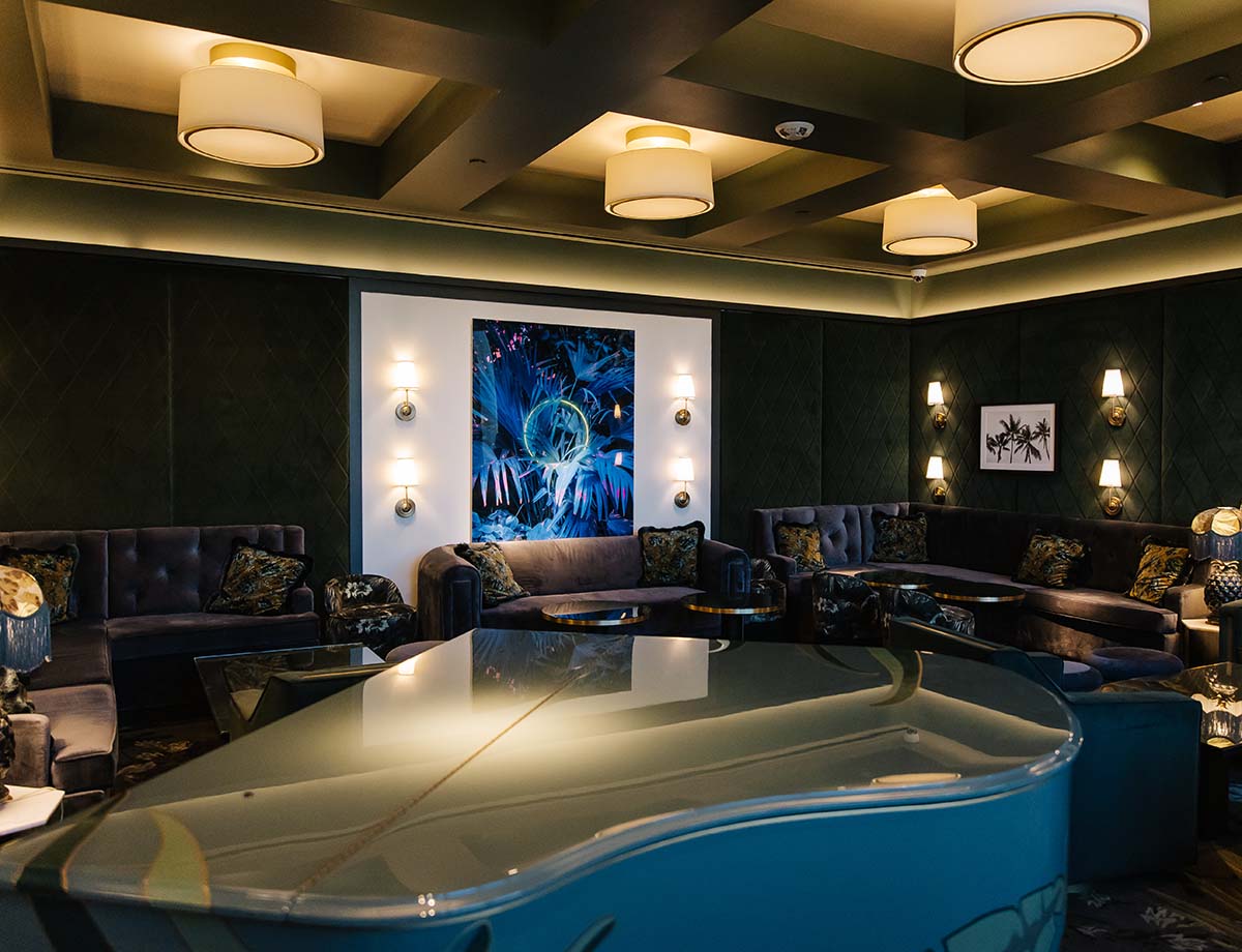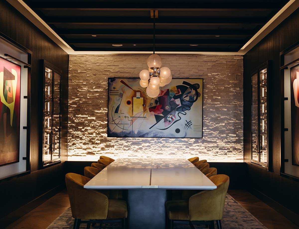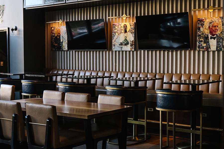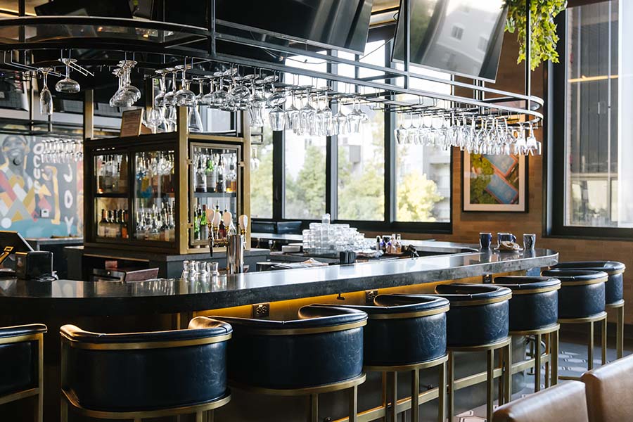 Brix apartments clubhouse with plush seating, large windows, and elegant decor.